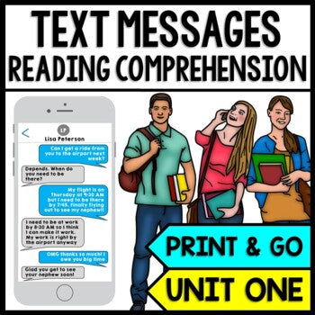With this PRINT AND GO activity, students will read a variety of text message threads and answer comprehension questions about them. Each of the scenarios outlined in the examples is based on real-world encounters students might experience themselves one day. There are a total of 10 different text message threads included with your purchase. Each text thread has 5 corresponding comprehension questions with it. That is a total of FIFTY questions for your students to answer!