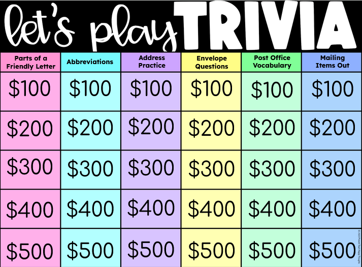 - Friendly Letter / Addressing Envelopes / Post Office Jeopardy, Unit 3 ($5)